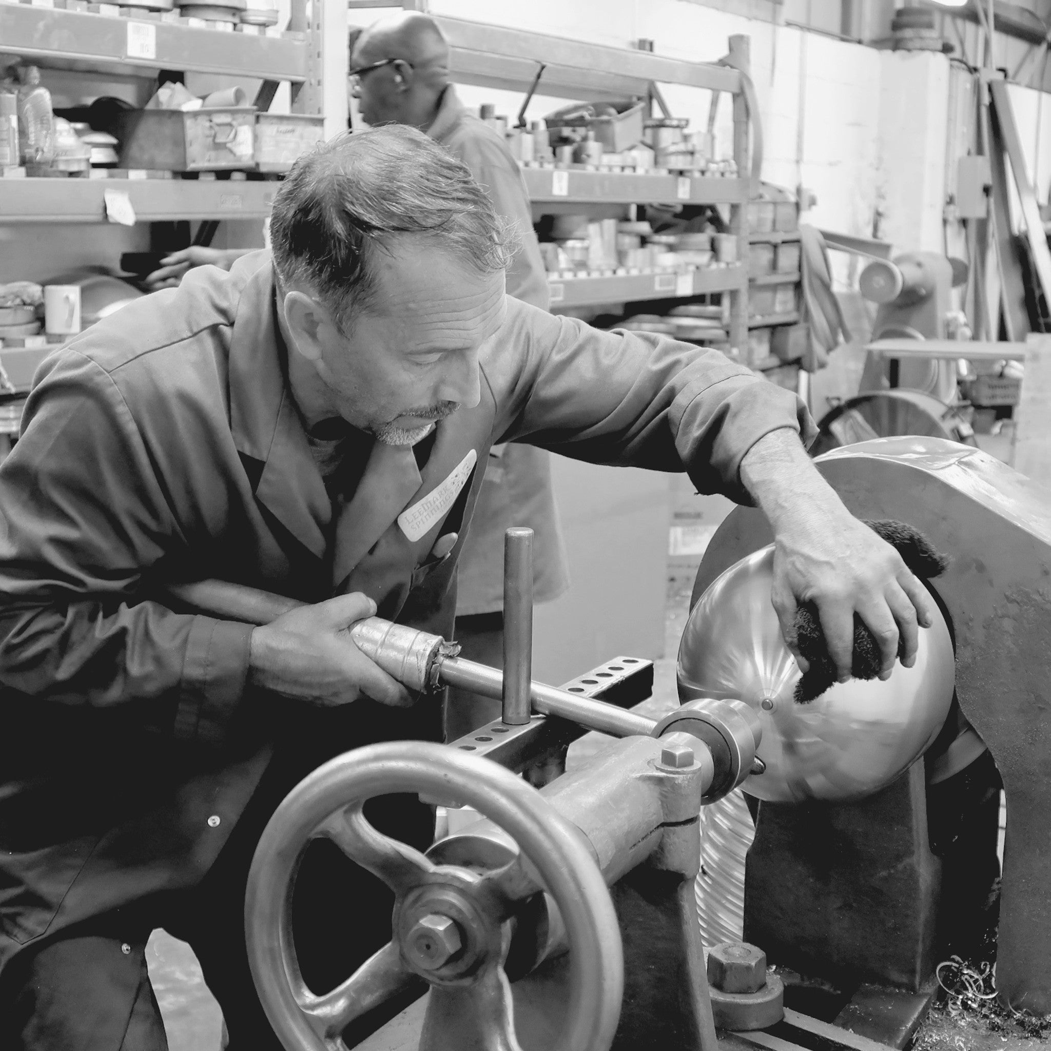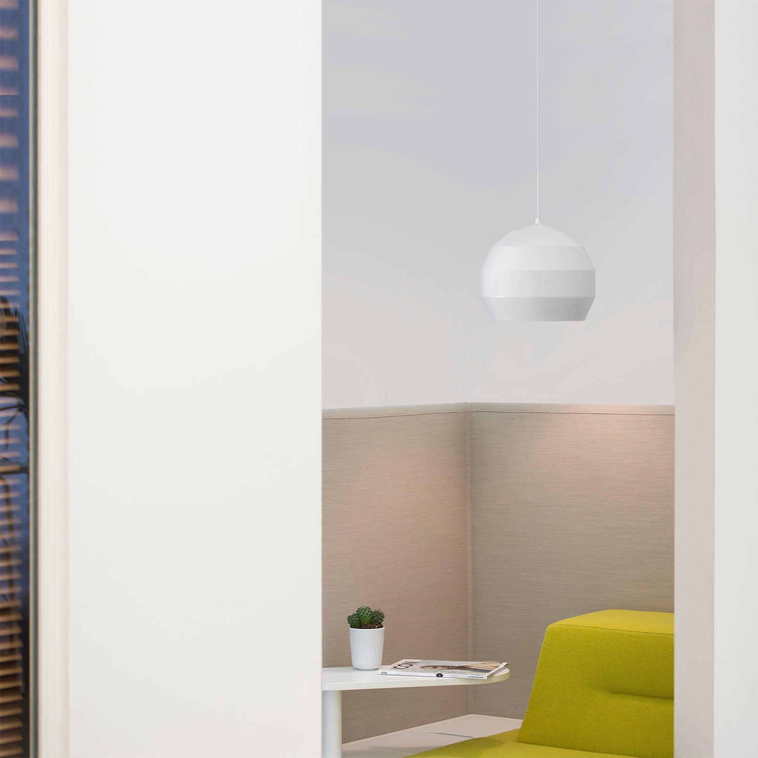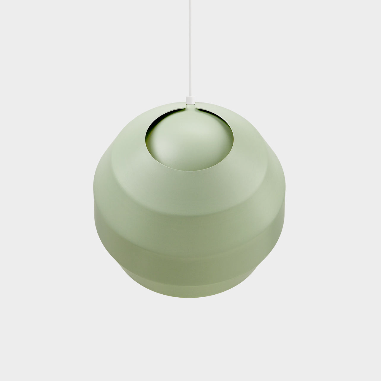 Handmade by skilled metal spinners, the adjustable Pitch Pendant lamp comprises a banded spun aluminium shade poised on an internal dome. The outer shade can be posed to guide light in any direction.